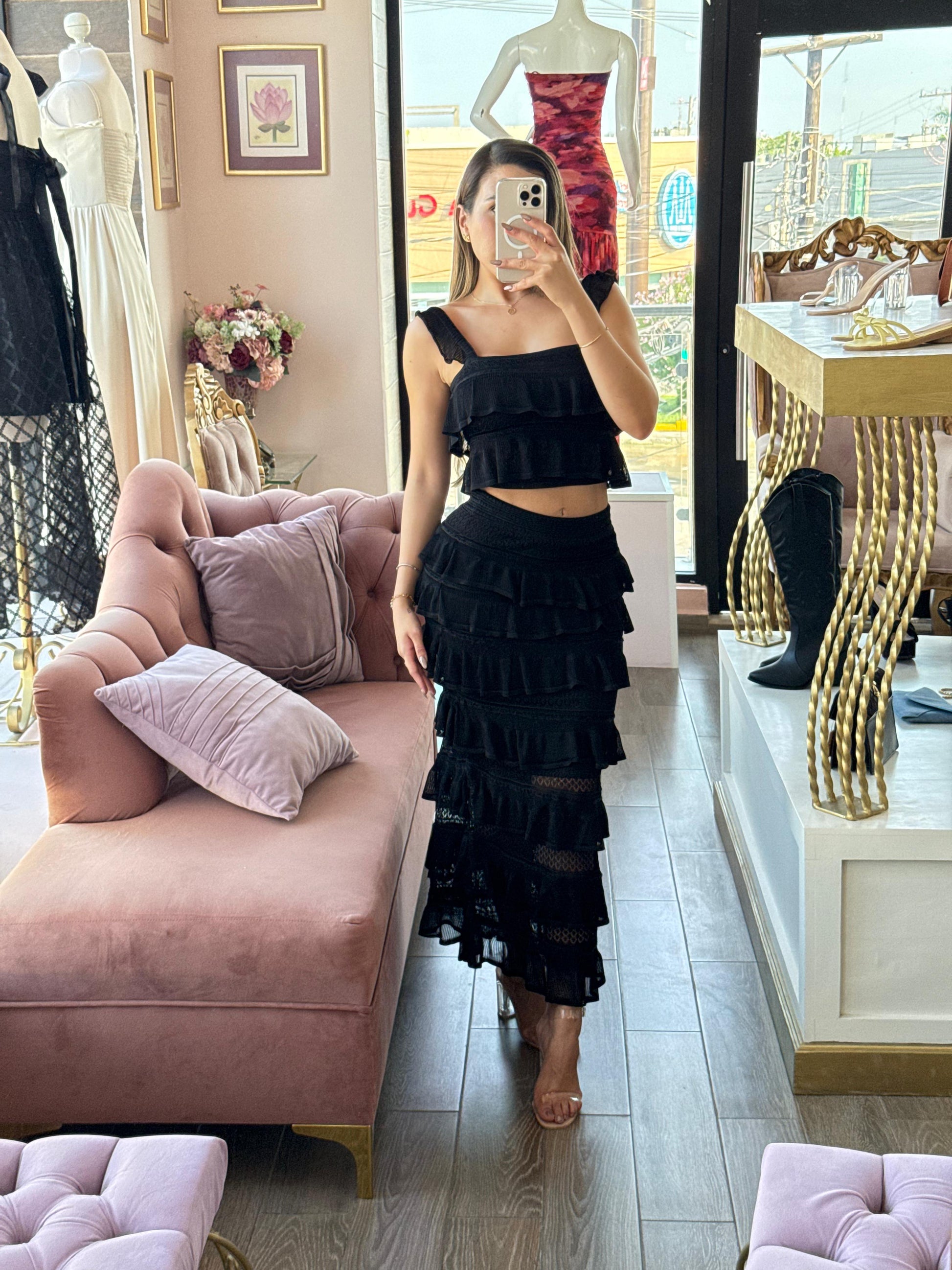 Conjunto Texturizado: Crop Top y Falda Tiered (en capas)